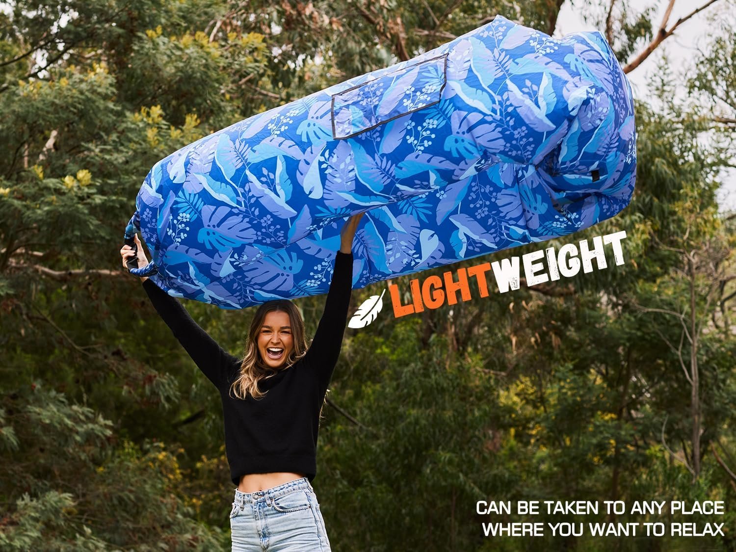 Fácil de inflar: no requiere bomba. Simplemente bate el sofá inflable a través del aire para inflarlo. El pequeño truco es que necesitas atrapar el aire cerrando la abertura de la manga antes del final de cada movimiento, y mantener la boca cerrada hasta que comiences el siguiente movimiento. Diseño único en forma de almohada: el sofá inflable WEKAPO tiene un diseño patentado de reposacabezas en forma de almohada que le da a tu parte superior de la espalda y el cuello un apoyo cómodo cuando más necesitas relajación. Tecnología antidesinflado: nuestro diseño patentado único junto con años de experiencia en la fabricación de productos inflados se aseguran de que una vez que la sala de aire WEKAPO esté inflada, permanecerá inflada durante al menos 5-6 horas para que nuestros queridos clientes disfruten. Portátil y ligera: la tumbona de aire WEKAPO viene en una bolsa. Pesa alrededor de 2 libras y se puede llevar cuando viajas. Calidad premium y mano de obra: la tumbona de aire WEKAPO está hecha de 100% poliéster antidesgarros 210T, lo que significa que obtienes tela resistente que puede soportar el sol, el agua, la suciedad y los insectos. Utilízala como una manta de picnic, para relajarse durante las vacaciones, hacer senderismo/camping o simplemente para pasar el rato con amigos o familiares en un jardín/patio trasero, un accesorio de campamento verdaderamente multifuncional