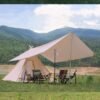 Lona, algodon. Dimensiones: altura 6.6 pies, piso 7.2 pies x 7.2 pies, peso 19.8 libras. Resistente al agua y con gato de estufa. Se abre en ambos lados, las grandes aberturas frontales y traseras para visión y ventilación. Compacto. Los postes se rompen en tres piezas, y esas tres piezas permanecen juntas. Viene con una funda de transporte para un fácil almacenamiento. Capacidad. Esta tienda de campaña de lona de algodón puede acomodar cómodamente a dos adultos para dormir. Se adapta fácilmente al colchón de aire de doble tamaño. 3-4 niños pueden dormir adentro. Perfecto para acampar al aire libre, así como fiestas en el patio trasero. Esta tienda de campaña también se puede instalar en un dormitorio para acampar en interiores Fácil de instalar solo. Dos personas lo hacen ir más rápido