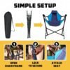 Movimiento oscilante y balanceo para una relajación definitiva: disfruta de un asiento único estilo hamaca que ofrece un balanceo suave y relajante con nuestra silla de camping de lujo, ideal para charlas junto a la chimenea, vistas al bosque o descansar en el parque. Plegable y portátil con bolsa de transporte: se empaqueta rápidamente en una bolsa compacta incluida, lo que hace que esta hamaca mecedora plegable sea fácil de llevar en caminatas, viajes, viajes por carretera o días de juego. Configuración rápida, no requiere herramientas: esta silla para acampar se despliega y se bloquea en su lugar en segundos, sin piezas complicadas. Una opción sin complicaciones para campistas, personas con traslado o cualquier persona que se dirija a eventos deportivos al aire libre. Diseñada para mayor comodidad al aire libre: diseñada con tela ergonómica y amplia estructura de asiento acolchada, esta cómoda silla mecedora soporta largas horas de sentado, ideal para reuniones al aire libre. Diseño ligero: con un peso de poco menos de 11 libras, nuestra silla mecedora de camping pod es fácil de transportar sin sacrificar la fuerza, portabilidad o soporte. Duraderas para suelos y clima resistentes: fabricadas con materiales amigables al aire libre, estas sillas mecedoras plegables funcionan en césped suave, terrenos irregulares o grava, listas para todas las condiciones. Capacidad de peso de 300 libras con marco fuerte: Silla hamaca resistente construida con una estructura reforzada para soportar hasta 300 libras, ideal para campistas que desean fiabilidad sin volumen adicional. Portavasos integrado para mayor comodidad: Mantenga su bebida a mano con un portavasos incorporado, perfecto para relajarse en una fogata o disfrutar de una barbacoa en el patio trasero. Ideal para todas las actividades al aire libre: desde senderismo y descanso en la playa hasta juegos de softbol y picnics en el parque, esta silla se adapta a cualquier entorno donde la portabilidad y la comodidad importan. Combina la sensación de hamaca con la libertad de oscilación: experimenta el suave balanceo de una hamaca en un diseño plegable y de apoyo. Perfecto para aquellos que buscan la comodidad de columpiar sillas hamaca en una forma portátil y lista para exteriores.