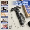 Multiherramienta todo en uno: esta herramienta multiusos combina un mini martillo, alicates de agarre de tubo, alicates de punta plana, removedor de uñas, cortador de alambre, hoja de sierra, cuchillo, destornillador Phillips, hoja dentada, destornillador ranurado, lima de uñas y abridor de botellas. Es el compañero definitivo para una variedad de tareas diarias Mecanismo de bloqueo de seguridad: equipado con dos cerraduras de seguridad, este martillo multiherramienta garantiza un uso seguro del martillo superior y otros componentes potencialmente peligrosos como el cuchillo de camping y la hoja de sierra. Puedes confiar en este versátil dispositivo para mantenerte seguro durante el uso Bolsa portátil para EDC: para acampar o senderismo, guarde este martillo multiherramienta de bolsillo en su funda conveniente. La funda protectora de nailon de alta calidad cuenta con un cierre de velcro y trabilla para cinturón para un transporte seguro y fácil acceso Regalo ideal para hombres: deleita a tu marido, novio o papá con este práctico gadget. Es un regalo de cumpleaños perfecto y una gran adición a los rellenos de calcetines de Navidad tanto para hombres como para mujeres Utilidad versátil: ya sea que estés acampando, haciendo senderismo, cazando o haciendo frente a tareas de mejoras para el hogar, esta mini herramienta de bolsillo es un compañero indispensable. Se adapta perfectamente a tu rutina diaria de transporte (EDC) y es perfecto para una variedad de actividades al aire libre y de bricolaje