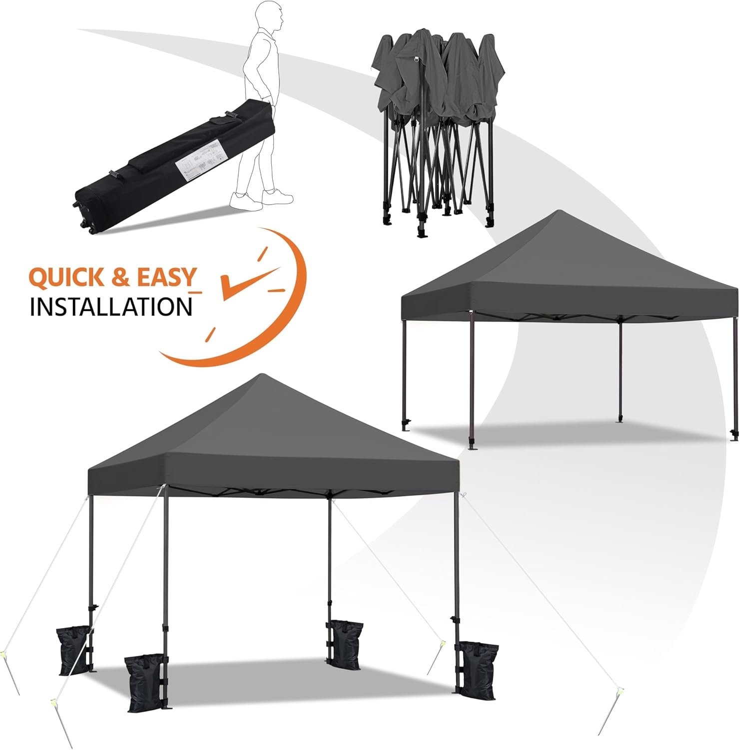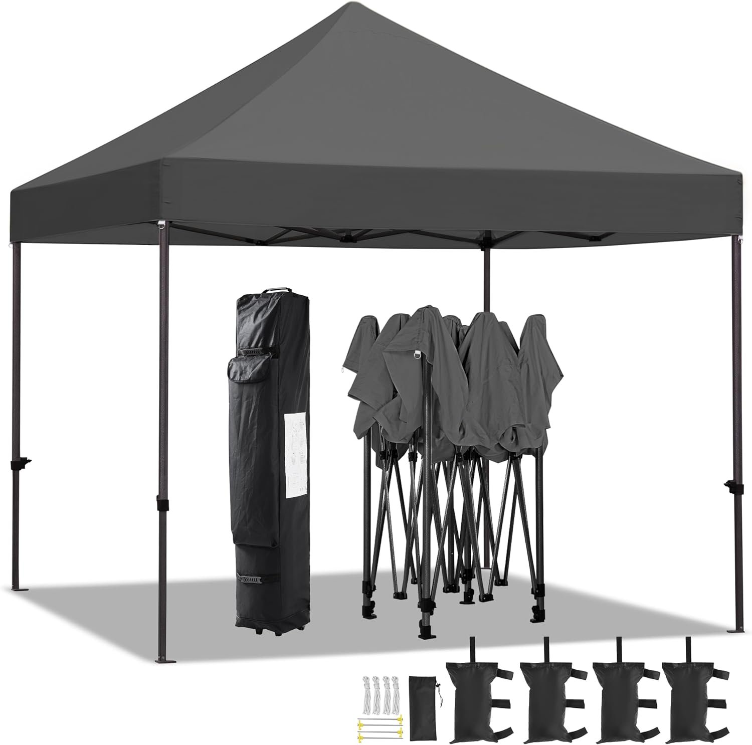 Materiales resistentes a la intemperie: Este toldo desplegable de 10 x 10 pies está hecho de tela de poliéster duradera con un revestimiento de poliuretano resistente al agua y un revestimiento protector ultravioleta FPU 50+, apoyado por un marco de acero resistente que ofrece resistencia. Tres alturas ajustables: Puedes ajustar la altura de esta carpa plegable a 10.6 pies, 10.9 o 11.2 pies con solo pulsar un botón, para personalizarla para eventos comerciales, bodas o reuniones familiares. Estructura robusta: el toldo de 10 x 10 pies cuenta con tela de poliéster resistente con un revestimiento de poliuretano y una capa protectora ultravioleta FPU 50+. El robusto marco de acero con recubrimiento en polvo garantiza durabilidad y resistencia para uso en exteriores. Traslados y almacenamiento sin complicaciones: este gran toldo se pliega en una bolsa con ruedas de 25,9 cm de largo × 25,9 cm de ancho × 162,6 cm de alto, lo que facilita el transporte. Es ideal para almacenamiento y traslado, incluso con su gran espacio una vez armado. Juego completo de toldo: este juego de toldo incluye todos los elementos esenciales para la instalación. Se completa con una bolsa de almacenamiento con ruedas, 4 cuerdas tensoras, 4 anclajes al suelo y 4 sacos de arena para un refugio seguro y cómodo.