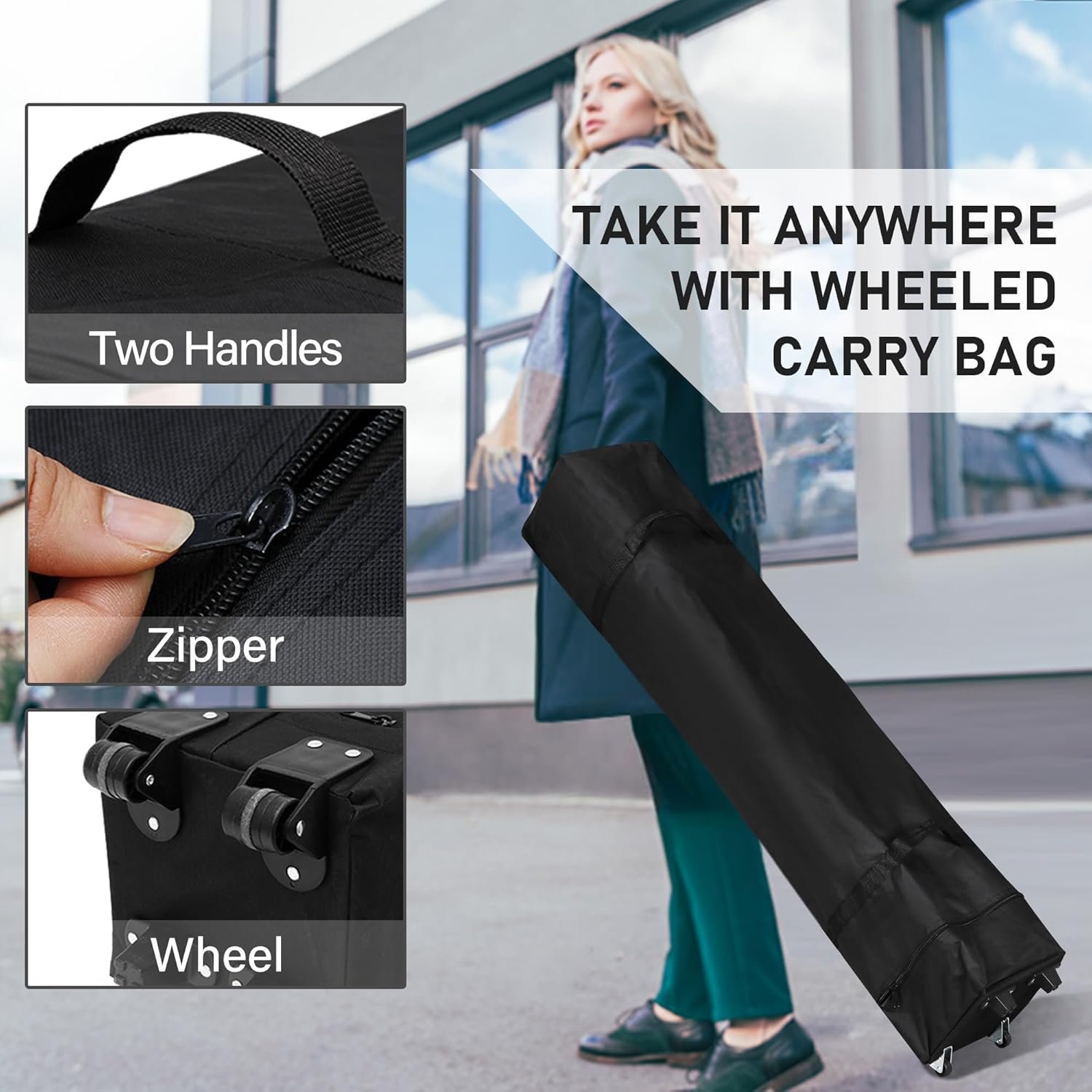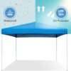 Tienda de campaña para exteriores de 10×10 pies: este toldo portátil proporciona sombra de 96 pies cuadrados, espacio lo suficientemente grande para 6-8 personas. Gran refugio instantáneo al aire libre. Ideal para camping, fiestas, eventos, playa. La gran tienda de campaña mantiene las fiestas al aire libre o acampar fuera del sol, lluvia incluso nieve Material de alta calidad: la parte superior del toldo de tela Oxford 210D es resistente al agua y ofrece protección UV y evita molestias del sol. Marco de soporte de acero resistente a la corrosión de alta calidad y patas rectas construidas para soportar el viento, la lluvia y el sol 3 Altura ajustable: ajusta la tienda de campaña instantánea al aire libre a tu altura preferida, ya que las patas cuentan con un sistema de botones para ajustar la altura. Botón de elevación fácil de piernas y agujeros de bloqueo Fácil de instalar: este toldo de sombra es muy fácil de instalar. Simplemente abre la tienda de campaña y aprieta las barras transversales para una instalación más fácil, luego cúbrela con el paño superior del toldo, ajusta a la altura adecuada y bloquea el marco del toldo. Viene con 8 estacas y 4 cuerdas que hacen que la tienda sea más estable Toldos portátiles con bolsa con ruedas: La bolsa con ruedas está hecha de tela Oxford 600D, impermeable y resistente al desgaste. Las ruedas dobles y las asas portátiles hacen que el transporte sea más suave y cómodo. Fácil de llevar al parque, playa y a cualquier lugar que desees
